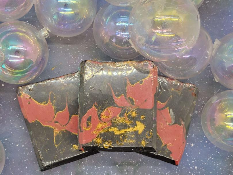 Olive Oil, Coconut Oil, Water, Sodium Hydroxide, Castor Oil, Synthetic Fragrance Oil, Cosmetic Grade Mica, Salt, Black Oxide