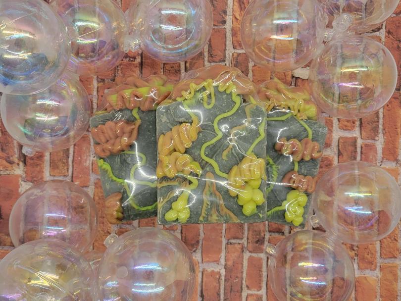 There is beauty in nature even if it is trying to chase and bite you. No need to worry about this creeping growth taking hold of your mind. Your other senses will delight in the bright floral scents and slight scrubby nature of the bar. Remember soap helps slow the spread of fungus……. *Click Click*